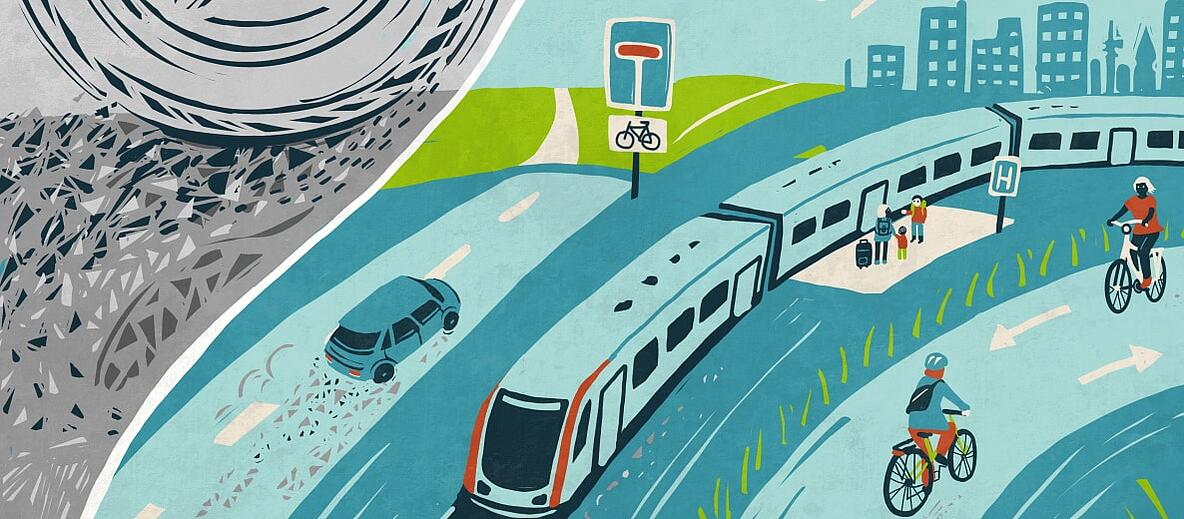 When coming home from school recently, the daughter Amira surprised her parents by asking: "Do you know what the biggest source of microplastics is? The abrasion of car tyres when driving on the road!" Her parents looked at her in disbelief. "Yes, that’s what we learned in chemistry today," Almira said. In the course of the same evening, Lena and David decide to do some research on the internet and find out it's true. That's right! Over the next few weeks, all family members tried to reduce their contact with microplastics. Amira now often rides her bike to school, while her little brother Max and his friends go to school with the “run bus”. Father David is quite happy that he is spared the stressful task of driving the children to school. Instead, he now enjoys walking the way to the tram stop. Last but not least, Lena bought herself an e-bike, with which she sometimes manages the 12 kilometres to the office even faster than she did in the past in the car.