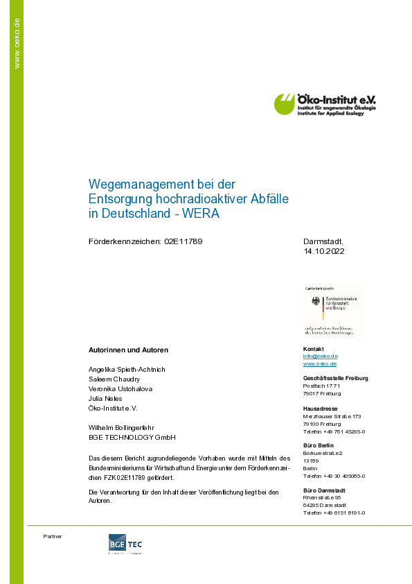 - Beratung der Abfallwirtschaftsgesellschaft des Neckar-Odenwald-Kreises mbH in Zusammenhang mit Abfällen aus dem KKW Obrigheim (Auftraggeber: Abfallwirtschaftsgesellschaft des Neckar-Odenwald-Kreises mbH (AWN)) - 2016