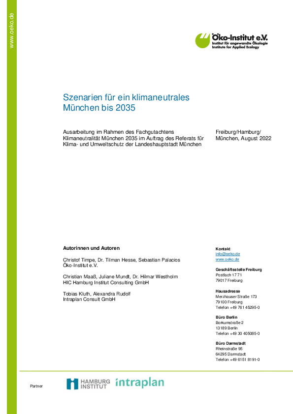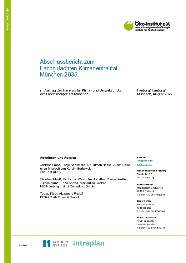 - Fachgutachten Klimaneutralität für die Landeshauptstadt München und Beratung der Stadt Freiburg i. Br. bei der Weiterentwicklung ihrer Klimaschutz-Strategie