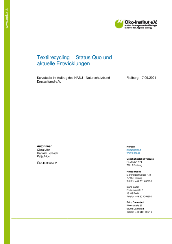 - Die neue Ökodesign-Verordnung: Anforderungen an das Ökodesign von Textilien und die mögliche Überführung in ein Ökodesign-Label