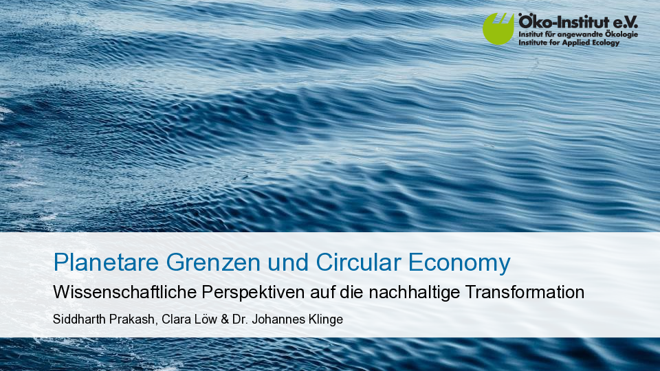- Nationale Kreislaufwirtschaftsstrategie: Begleitung Stakeholder-Prozess und wissenschaftliche Begleitung der Entwicklung der deutschen Nationalen Kreislaufwirtschaftsstrategie (NKWS)