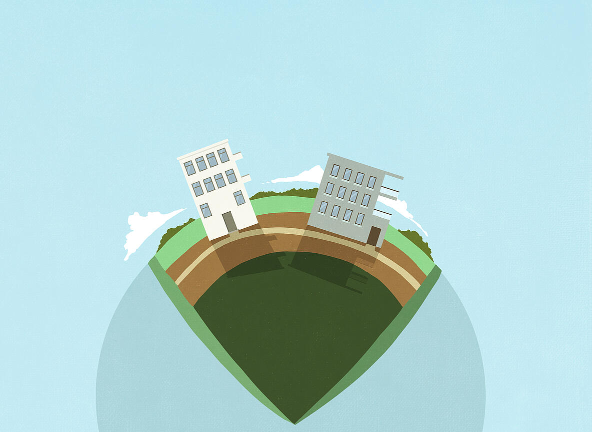 The declared goal in Germany is to limit new land take for settlement and transport purposes to less than 30 hectares per day by 2030; at 20 hectares, the Integrated Environmental Programme 2030 has an even more ambitious target. Moreover, the German federal government aims for "net zero" impervious sealing by 2050 in its National Sustainability Strategy. These are targets that seem almost unachievable. Every day in Germany, an average of 55 hectares or 78 football pitches disappear under settlements and transport infrastructure. While land consumption has been declining, the reduction is insufficient to meet the targets. Overall, areas under settlements and transport infrastructure have doubled over the past six decades, currently accounting for 14.5 percent of the country’s total area. New land consumption is particularly high in rural regions, where land prices are significantly lower than in growth centres or conurbations. This is often fuelled by tax incentives such as the commuter allowance. Moreover, there is often a lack of awareness of the problem.
