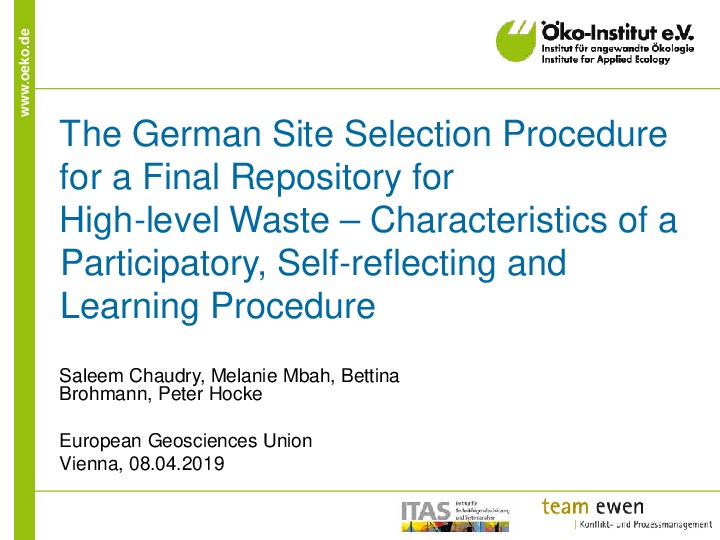 - Requirements upon the design of public participation in site selection procedures for final nuclear repositories: Analysis of large-scale projects with regard to their public participation strategies, for the German Federal Office for Radiation Protection BfS