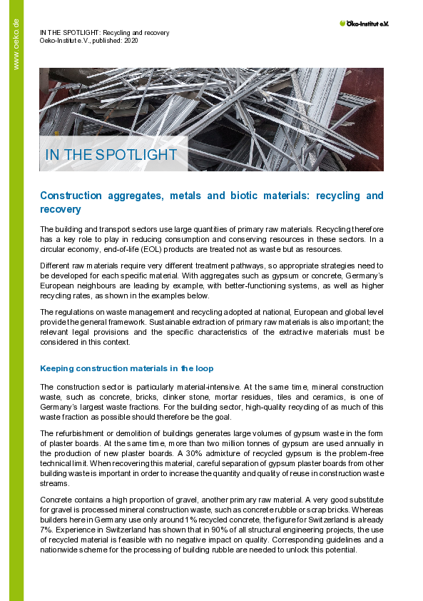 - Policy and corporate advisory work in the field of environment, material flows and closed-loop materials and waste management