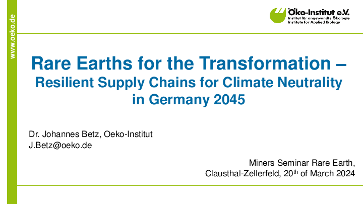 - Researcher at Oeko-Institut e.V. Resources & Transport Division (since May 2020)