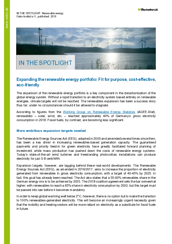 - Analysis and development of renewable power support schemes, especially the German Renewable Energy Sources Act (Erneuerbare-Energien-Gesetz, EEG)