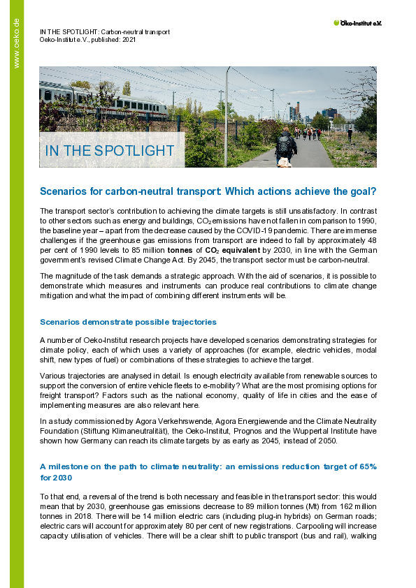 - Design and impact analysis of climate protection instruments in the transport sector (e.g. CO2 fleet target values, GHG quota)