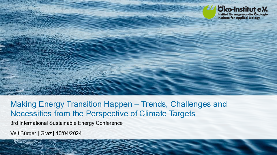 - Since 2002: Deputy Head and project leader at Öko-Institut e.V. (Energy & Climate Division)