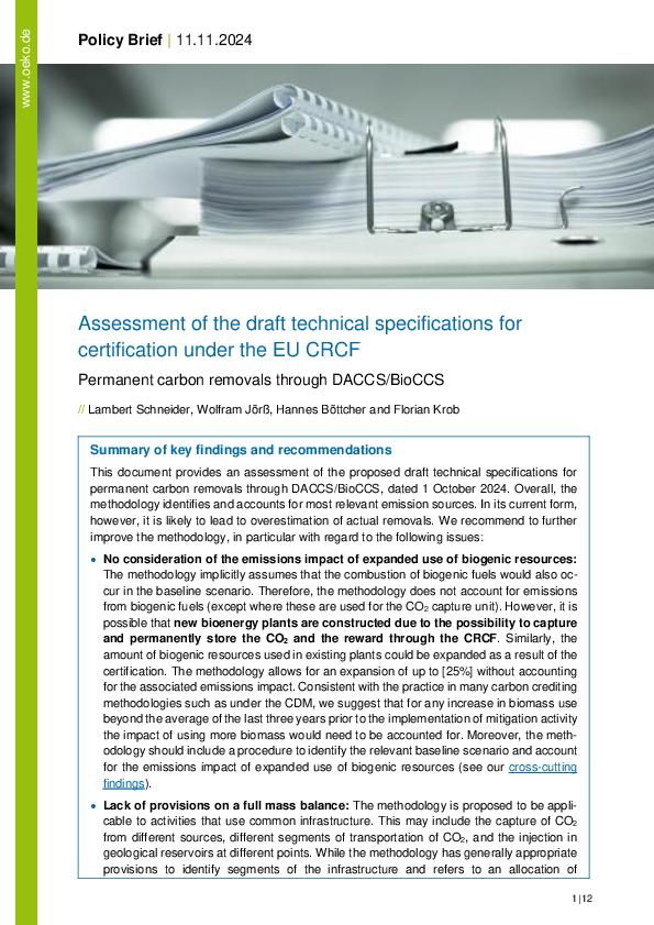 Assessment of draft methodologies under the EU Carbon Removal Certification Framework (CRCF) I