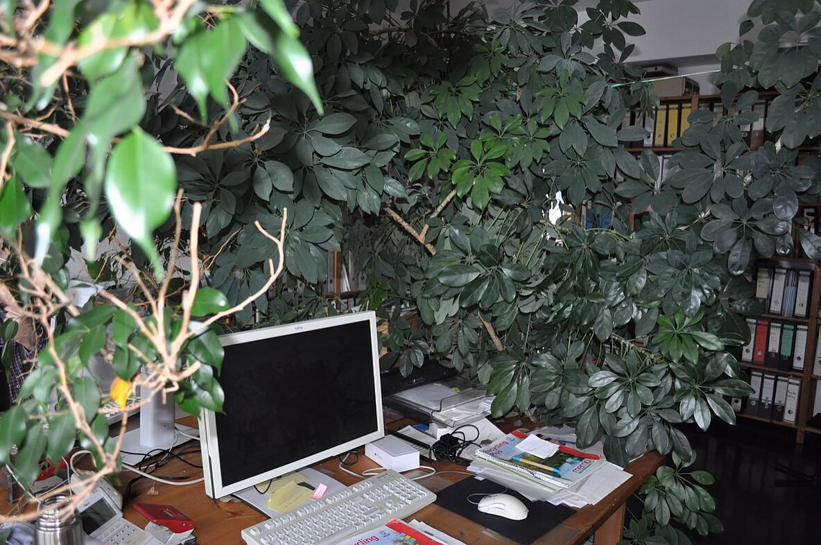 „Ist Christoph da?“ Ein bequemer Blick durch die offene Tür hilft da nicht weiter, eine dschungelartige Schefflera macht alles dicht. Eigentlich fehlt nur noch der Papagei. Den lässt Christoph Brunn, Senior Researcher im Institutsbereich Umweltrecht & Governance in Darmstadt, dann doch lieber zu Hause. Dort hat er nämlich tatsächlich zwei.
