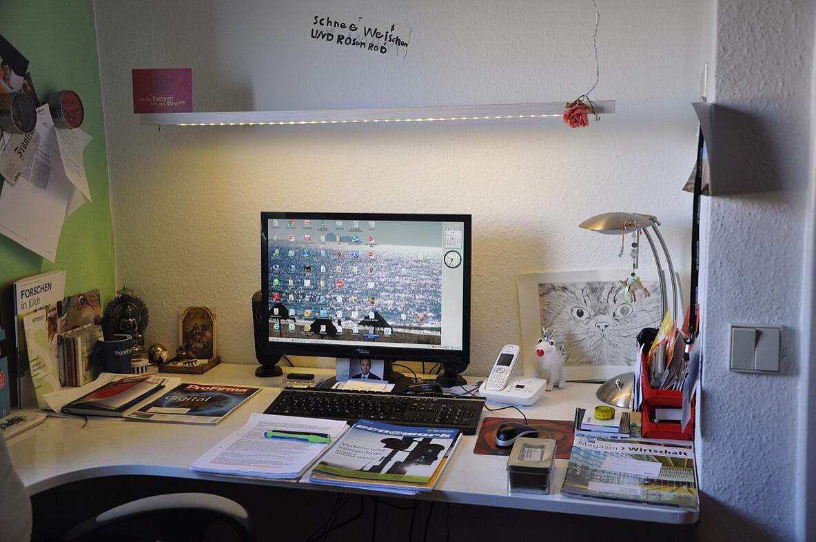Wissenschaft und Emotionen – dass dies kein Gegensatz sein muss, beweist der Schreibtisch von Kathleen Spilok. Die Journalistin, die im Vorstand die Öffentlichkeitsarbeit des Instituts begleitet, schreibt vorrangig über Themen rund um erneuerbare Energien. Als Pause und zur Erholung von der Kopfarbeit bringen Dinge zum Anfassen wie der Zen-Garten oder der Linoldruck der Katze – beides Geschenke ihrer Tochter – Kathleen Spilok zum Schmunzeln. Persönliche Dinge, die bleiben inmitten des schnellen Medienlebens.