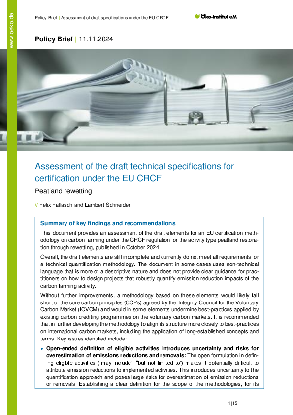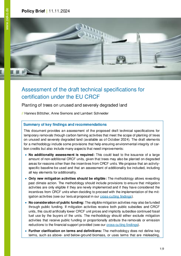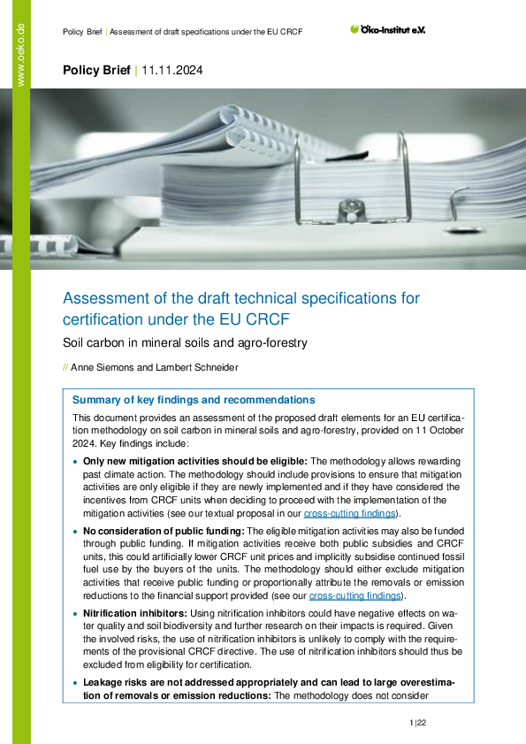 Analyse der Entwürfe für Zertifizierungsmethoden unter dem EU Zertifizierungsrahmen für Kohlenstoffentnahme (EU CRCF)