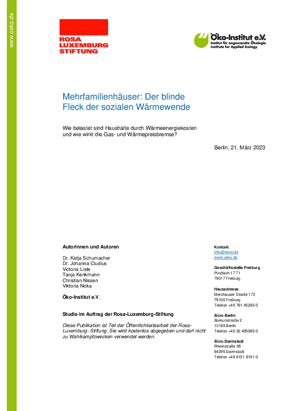 Mehrfamilienhäuser: Der blinde Fleck der sozialen Wärmewende - Wie belastet sind Haushalte durch Wärmeenergiekosten und wie wirkt die Gas- und Wärmepreisbremse?