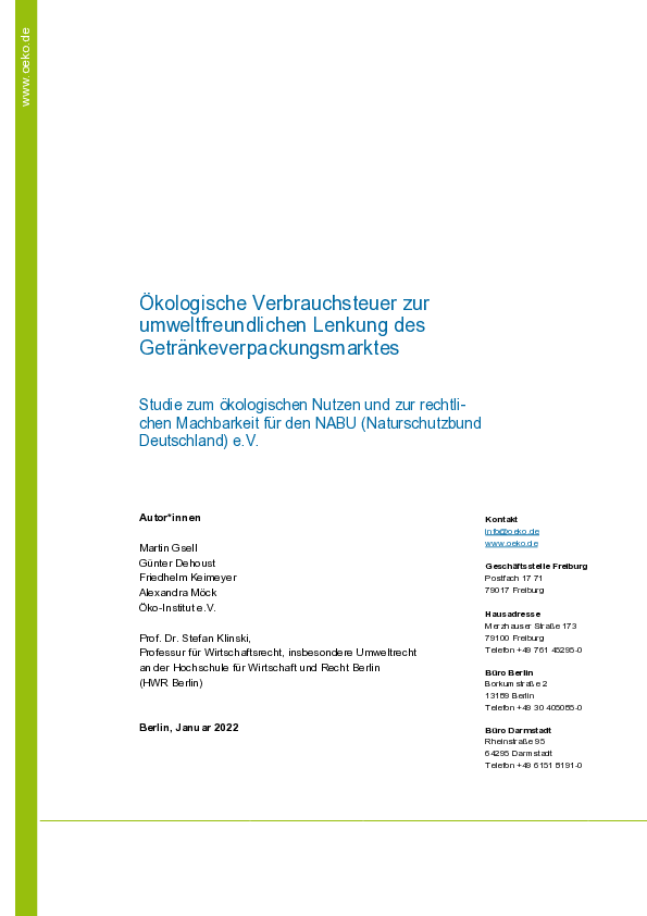 Ökologische Verbrauchsteuer zur umweltfreundlichen Lenkung des Getränkeverpackungsmarktes Studie zum ökologischen Nutzen und zur rechtlichen Machbarkeit für den NABU (Naturschutzbund Deutschland) e.V