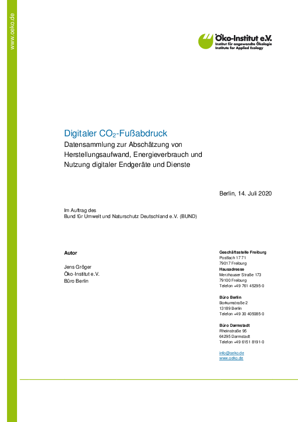 Recherche und Zusammenstellung von Daten für einen „Digitalen ökologischen Fußabdruck“
