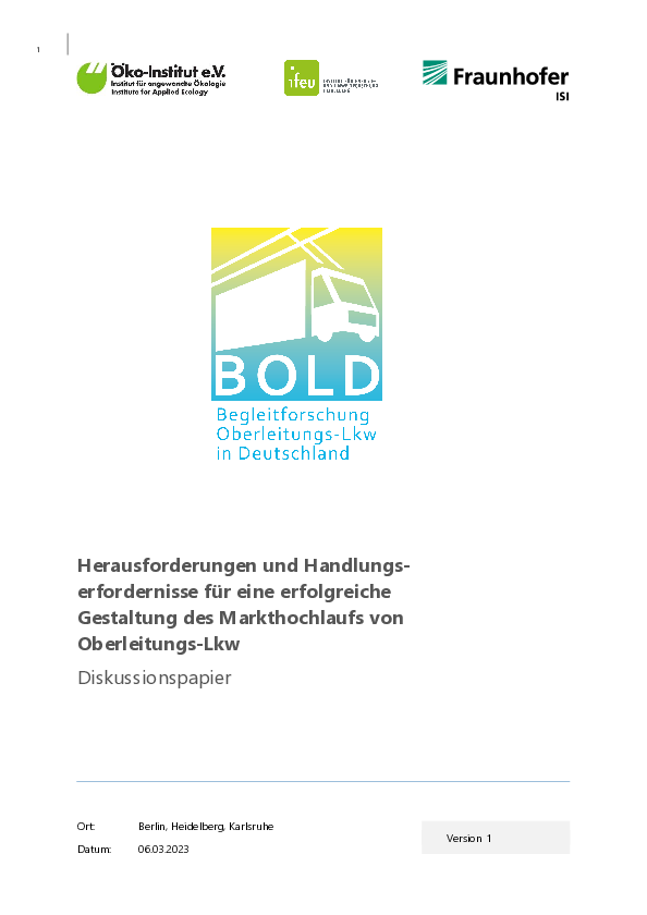 Ziel des Projektes ist eine Überblicksstudie zu Oberleitungs-Lkw, die zentrale Fragen rund um die Motivation für die Technologie, mögliche technische Konfigurationen und denkbarer Anwendungen und Marktpotenziale, sowie die energiewirtschaftlichen und ökologischen Auswirkungen thematisiert und anschaulich aufbereitet. Bei der Bearbeitung der Studie kann auf unterschiedliche Quellen zurückgegriffen werden. So stehen einerseits die Analysen aus laufenden und abgeschlossenen Forschungsvorhaben des Öko-Instituts zur Verfügung. Auf dieser Wissens- und Datenbasis können ausgewählte, ergänzende Analysen durchgeführt werden. Zudem werden im Rahmen des Projektes nationale und internationale Studien zum Thema herangezogen und deren Erkenntnisse in geeigneter Weise aufbereitet bzw. für Vergleiche herangezogen.