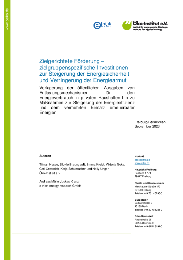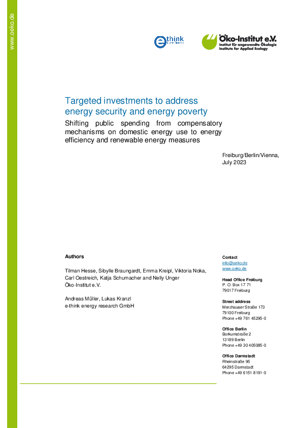 Study on shifting public spending from compensatory mechanisms on domestic energy use to short-term energy efficiency and renewable energy measures