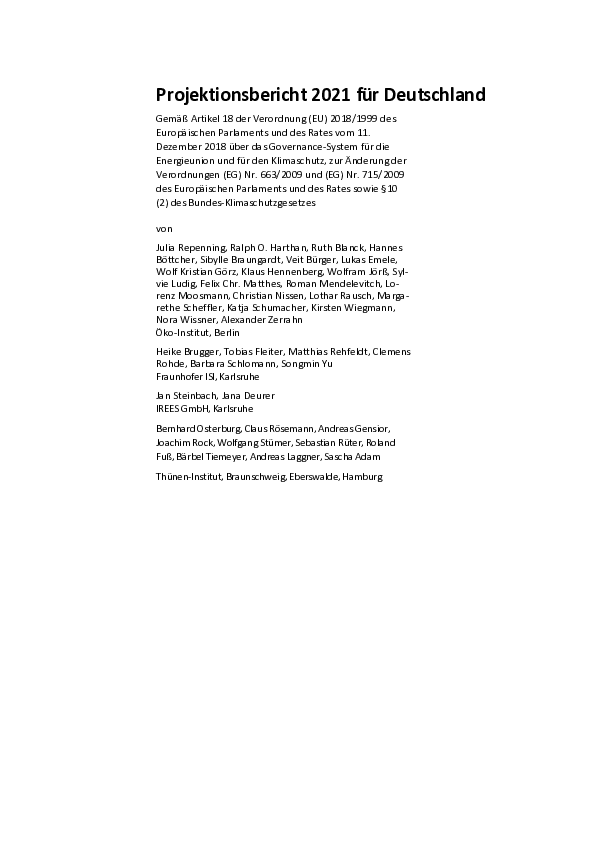 THG-Projektionen: „Politikszenarien für den Klimaschutz X“