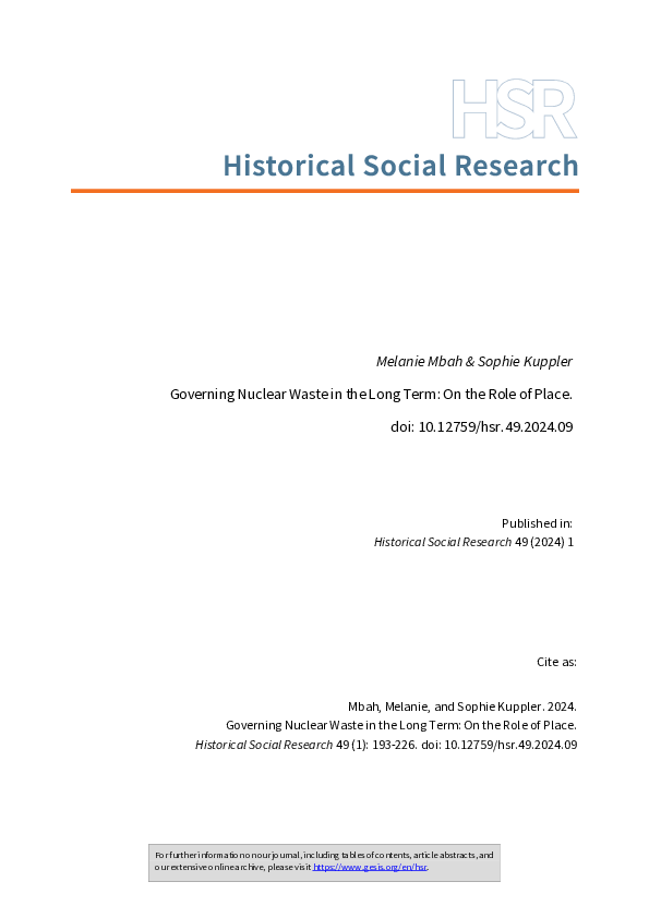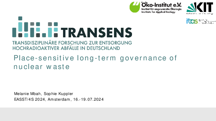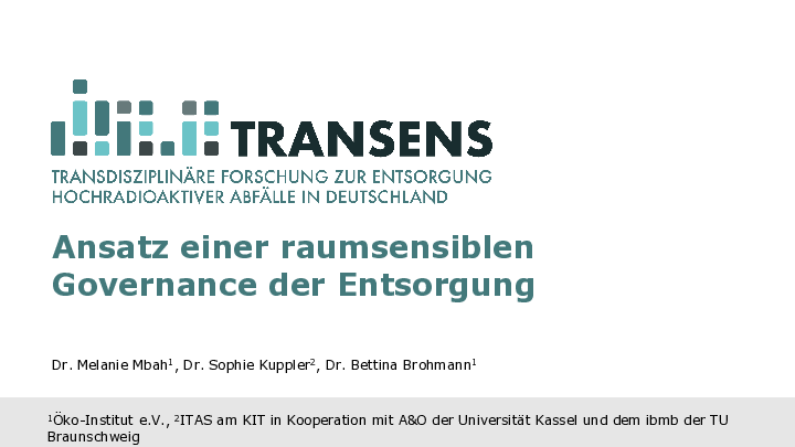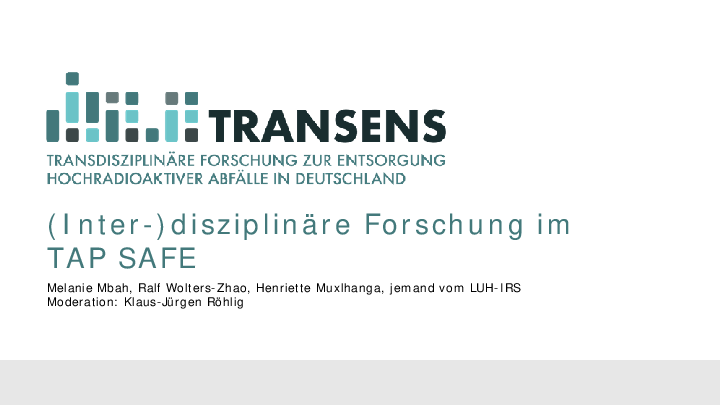 TRANSENS - Transdisziplinäre Forschung zur Entsorgung hochradioaktiver Abfälle in Deutschland - Forschung zur Verbesserung von Qualität und Robustheit der soziotechnischen Gestaltung des Entsorgungspfades