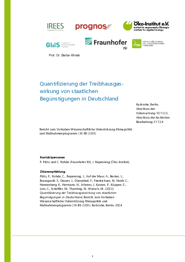 Wissenschaftliche Unterstützung Klimapolitik und Maßnahmenprogramm