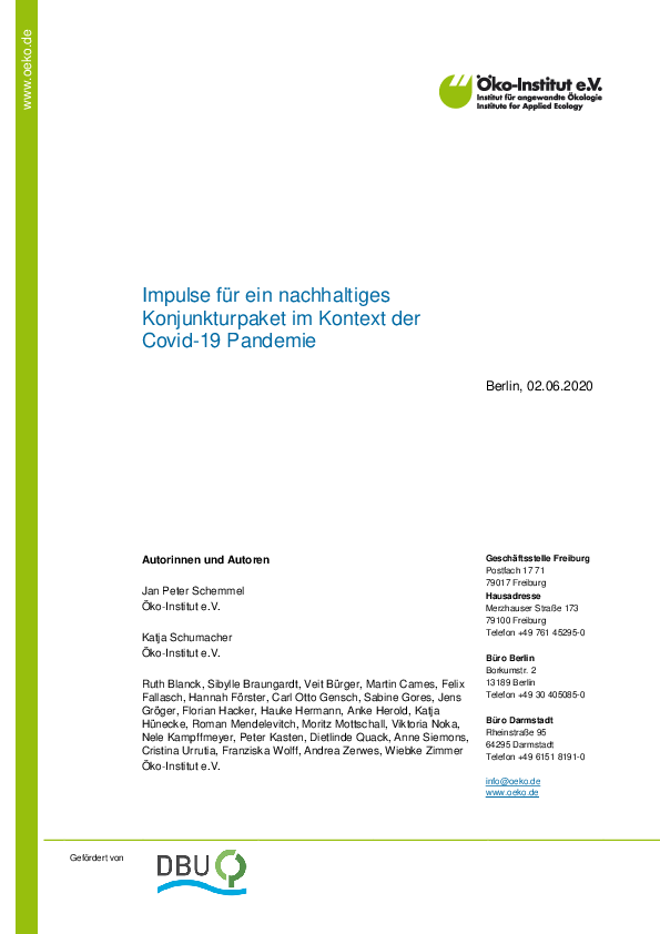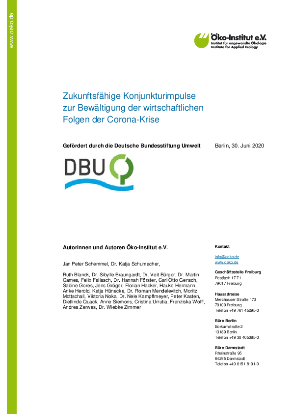 Zukunftsfähige, nachhaltige Konjukturimpulse zur Bewältigung der wirtschaftlichen Folgen der Corona-Krise (insbesondere für KMU)